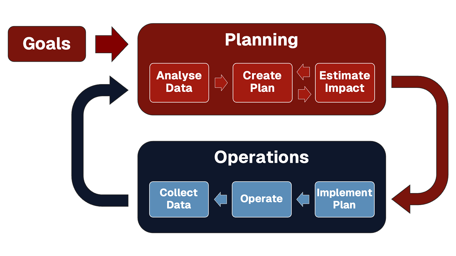 An example of a typical slower feedback loop is the learning cycle. Most businesses have two parallel sets of business processes: processes to plan the operations, and the actual business operations. To make better plans in the future, a planning process needs historical data from operations to analyse how well previous plans worked and to estimate the impact of new plans, relative to goals. Establishing the collection and interchange of all the right data as an afterthought is likely to pose major architectural challenges.